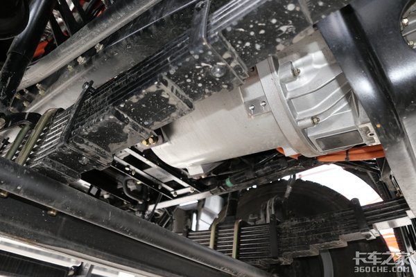 动力电机采用了由中车时代提供的永磁同步电机,最大功率490马力,最大扭矩2550牛米。和柴油车一样,J6P EV还为这台电机配上了12挡AMT变速器,具体型号为CA12TAX230A3,头挡速比为12.189,尾挡速比为0.783。同时还带有取力器,方便与其他设备协同工作。