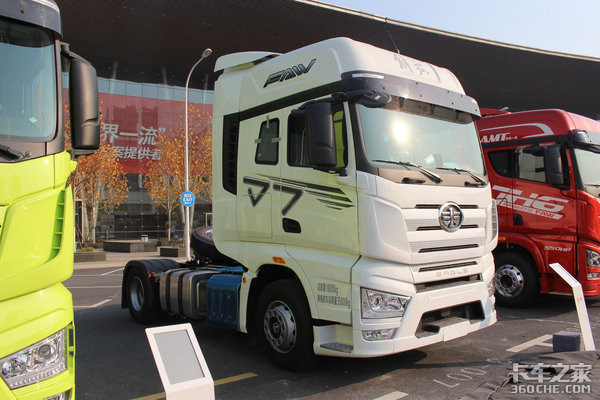 第二款是一汽解放J7,4×2牵引车,该车是2020年年底一汽解放商务年会上展出的,搭载560国六机匹配采埃孚AMT,还配置了空气悬挂和液力缓速器。