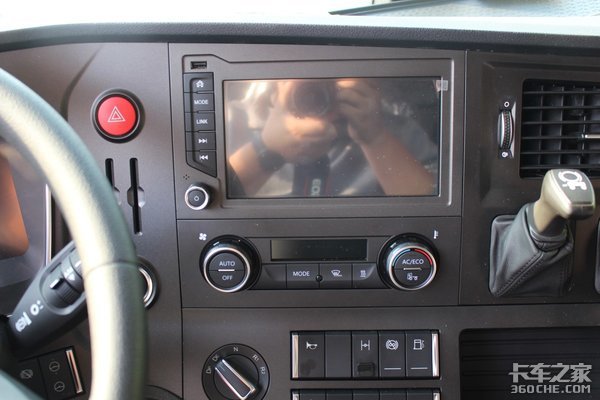 与之匹配的是采埃孚AMT手自一体变速箱,型号为ZF-12TX2621TD,最高挡为直接挡,速比为1。该车的变速箱操作机构为旋钮式设计,是布置在中控台上的,其位置就在方向盘的右下方。在方向盘下面的操作杆上,还布置有挡位及液力缓速器的操作开关,操作起来十分的方便。