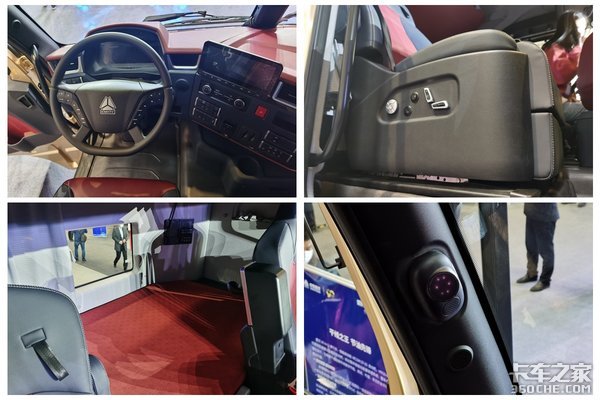 配置方面,方向盘采用重汽全新设计的四幅式多功能方向盘、中控台配置有大尺寸液晶显示屏、主副驾均采用气囊座椅、下卧槽宽度达到了930mm。此外,为了保证驾乘安全,全新黄河重卡配备了驾驶员疲劳检测系统,感应模块以及声音提醒装置集成在A柱上面。