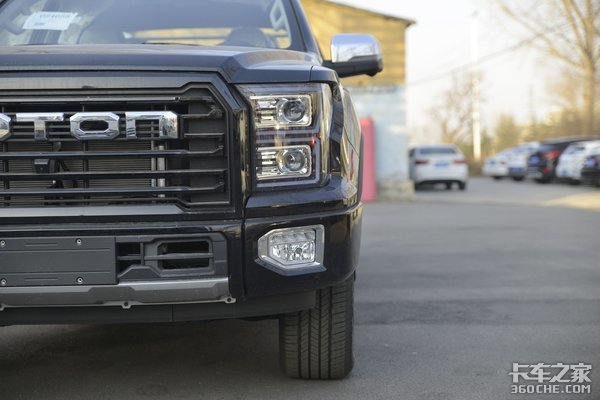 相信不少熟悉福特F150车型的卡友对福田大将军的外观设计并不陌生,发展到现款的大将军其实从很多细节上已经有了更多的自主设计。简洁的进气格栅搭配大大的镀铬福田车标透露着一股子硬汉气息,在外观覆盖件的拼接上相比与老款车型好上不少,足以展示福田对于大将军车型的用心。