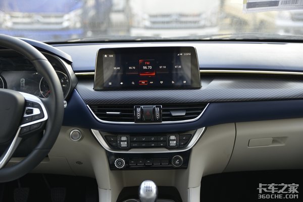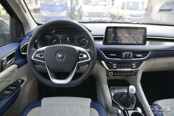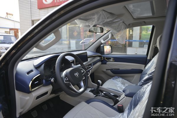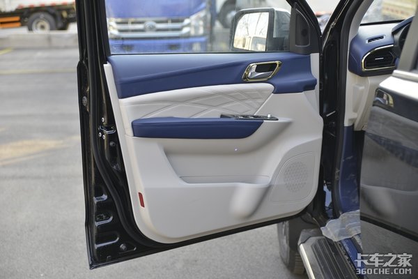 整体内饰的风格已经完全的乘用车化,这样的内饰你敢相信大将军只是一款裸车指导价13万多的车型吗?蓝白的撞色虽然打理起来不方便,但是皮质所带来的细腻和豪华是肉眼可见的。