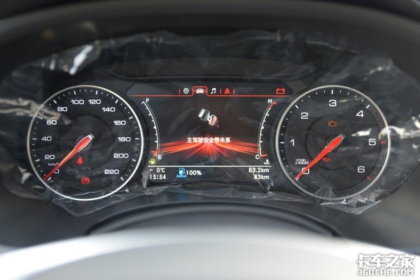 仪表盘并未采用全液晶的设定,不过在显示的样式上还是不少下功夫,字体清晰易读,中央液晶屏的分辨率极佳,显示了大量的行车信息,尿素量、水温、电压、油量等信息均集成于此。