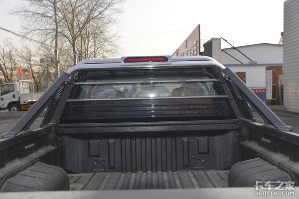在大将军的后尾箱位置设置了龙门架,能够有效提升一定的货厢抗扭性,同时在发生侧翻事故时,龙门架的设定也能保证一定的车身刚性。不过平时用货厢拉一些贵重财物的卡友可以定制改装一套尾箱盖,高盖和平盖板能够更好的保护后尾箱的货物安全。