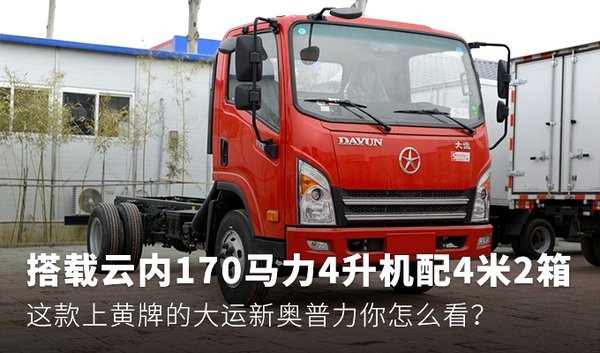 今天的每周说车给大家看一款基于大马力、高出勤特点打造的大运新奥普利4米2栏板黄牌载货车,该车搭载云内4升动力,车货总重近10吨。