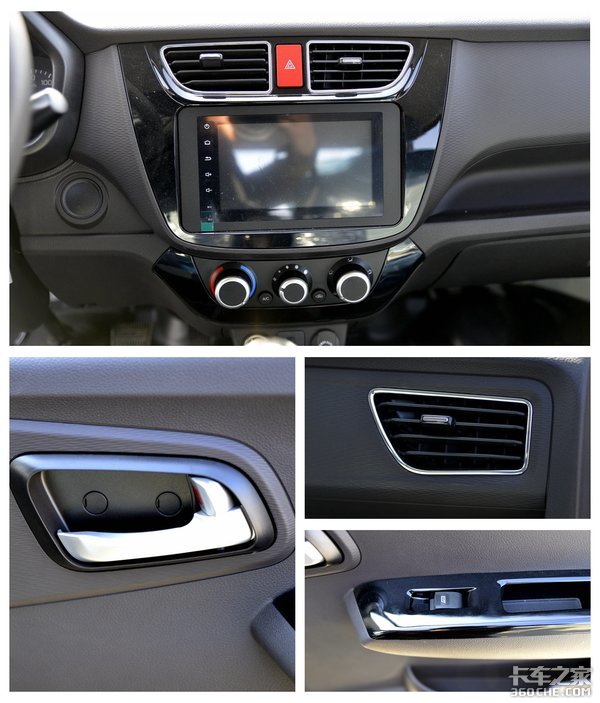 这款小卡之星的中控台使用钢琴烤漆饰板以及镀铬饰条装衬,其他地方像空调出风口、门把手等细节均有所装饰,整体来看非常有家用轿车的味道。