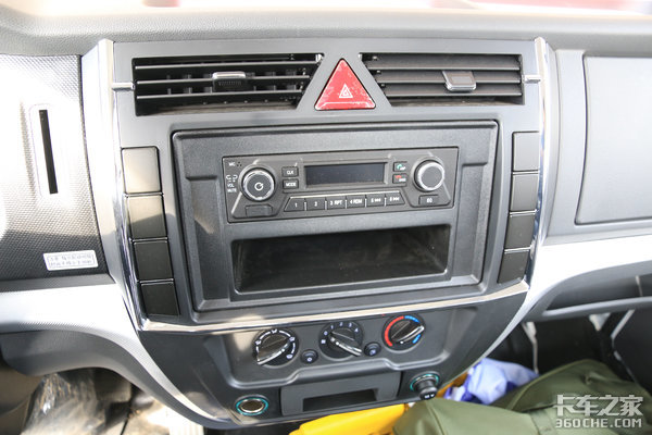 中控台方面,此车搭载的是普通收音机,根据卡友的实际需要也可以选装大屏多媒体。实拍车辆在收音机下方设立了储物格,由于城市配送,货单票据交接频繁,此处放置货单票据和手机再合适不过。