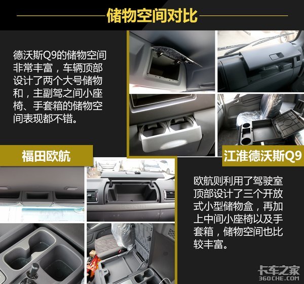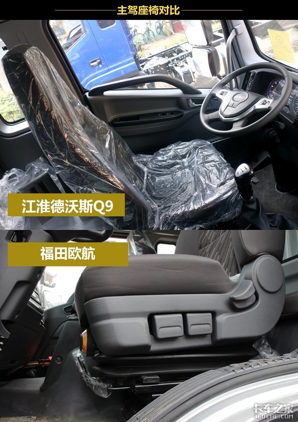 座椅的配置直接决定了卡友们的驾乘舒适性,实拍的两款车都采用的是气囊减震座椅,带有多项调节功能,区别在于德沃斯Q9还带有扶手,可以缓解长时间驾驶带来的疲劳感。
