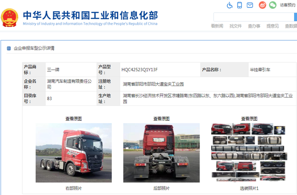 【卡车之家 原创】通过查询国家工信部第342批公告,笔者在其中也是发现了一款三一重卡牵引车的申报信息。该申报公示车型主要是在动力上为用户提供了更多选择,让我们一看究竟。