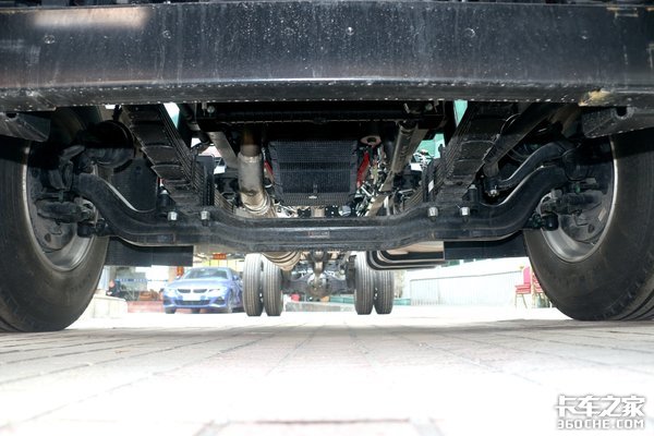 在底盘设计上,该车的车架进行了结构优化,直通梁采用规格为245×70×6的高强度钢。后桥是采用9T桥,速比为4.11,弹簧片数采用9/9+7的形式,整个底盘的设计在保证承载力的同时,还有效降低了自重。