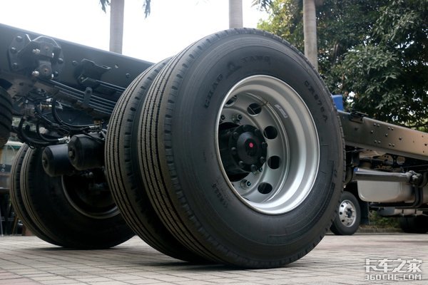 轮胎是采用规格为11.00R22.5的朝阳轮胎,其特点就是散热性好、安全性高、平衡性稳等。另外,该车还采用了美国康迈免维护轮端,大幅延长换油周期,降低维护成本。