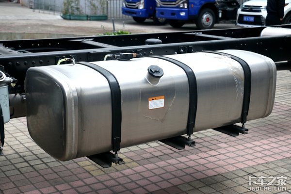 油箱是匹配的450L容积,采用铝合金材质外壳,不仅降低了车辆自重,还提升了其续航能力,提高运输时效性。不仅如此,还有铝合金储气筒,外观又好看、防腐蚀性又好,还不易产生杂质。