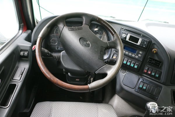 整体内饰设计比较简洁,这也符合自卸车的定位,由于长征不没有驾驶室的设计经验,长征太脱拉采用了湖北齐星驾驶室。并且细心的卡友发现了方向盘上并未出现长征的车标,同样也是因为采用了其他车企的方向盘,不过手感还是非常不错的。