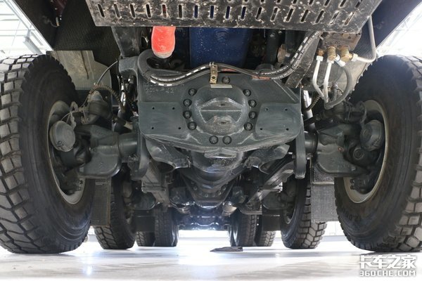 这样的设计虽然在空载时让轮胎可能会有一定的偏磨,但是在重载越野时能最大程度的让轮胎贴合地面,像蜘蛛一样牢牢抓住。这样的设计也让长征太脱拉最大程度的提升了越野性能,驾驶8X8的驱动形式,让其有着足以媲美军车一般的通过能力。
