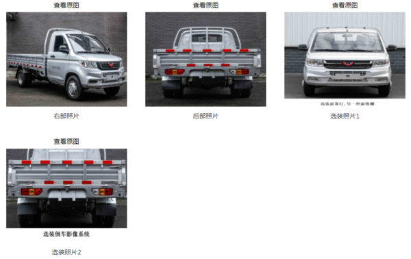 从申报图中我们能够看到,这款车依旧采用五菱荣光驾驶室,不过提供了双幅镀铬中网进行选装,看上去更加的精致,整体依旧是经典的造型。