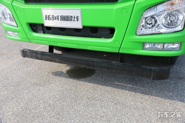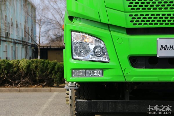 实拍的这款JH6领航版自卸车采用凸地板平顶全浮驾驶室,操纵台与地面有着一定的高度,这样能够保证车上人员有着充足的观察视野。在整体造型上,与解放家族式外观保持高度一致,整车为苹果绿涂装,在建筑、垃圾场等场所更加的显眼。