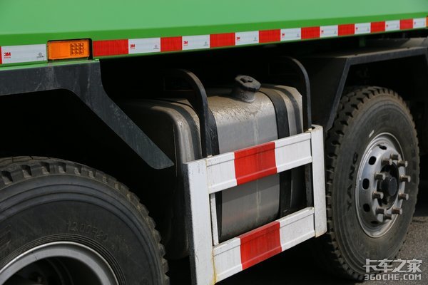 油箱的容积为400L,对于跑中短途的自卸车来说,这个容积可以还是比较大的。另外,油箱壳体采用铝合金材质,可以很好的降低车辆的自重。