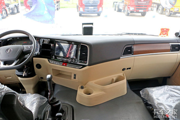 同时内饰整体的配色并不是一成不变的,在副驾驶前方还采用了仿木纹材质的饰板,看起来也是非常高级。同时准平地板的驾驶室也让内部空间利用率变得更高,主副驾换个位置同样很方便。