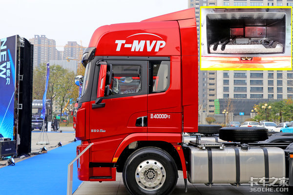 对于牵引车,侧面的颜值也是非常重要的,实拍车侧面设计比较硬朗简约,配合原厂导流罩非常有气势。在两侧门把手后部位置还带有一个侧置储物格,容积一般但减震性能很好,放置一些随车工具还是很方便的。