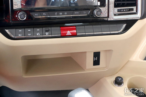 舒适性方面,气囊座椅必须是标配的,搭配上四点悬浮的驾驶室,能为驾乘人员提供一个舒适的乘坐环境。惊喜的是在离合器踏板旁边,车辆配备有歇脚板,这对于长途行车而言,能够缓解腿部疲劳,实用性非常的高。