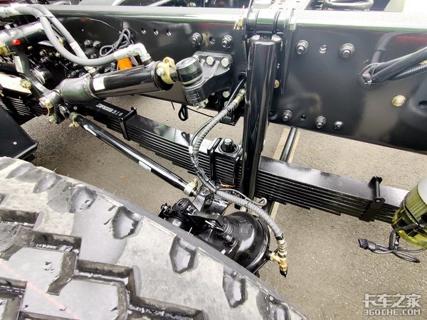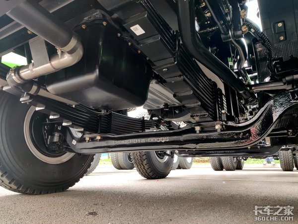 悬架上,采用规格为前簧10×20、后簧3×30+9×28的多片式钢板弹簧,钢板弹簧厚度行业内领先,承载性能提升近10%,据称这是行业最强承载。