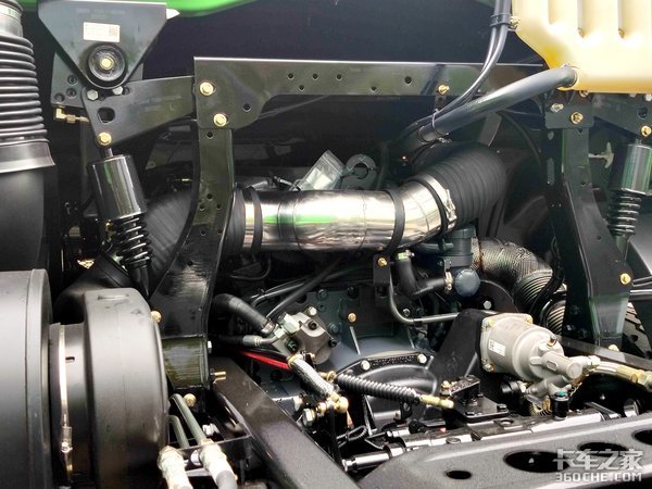 而在底盘轻量化方面,该车采用铝合金材质的储气筒以及400L的大油箱,部分组件采用非金属特种尼龙导向板、高分子副槽等新材料,达到了一定的降重效果。