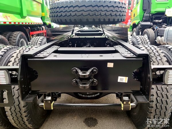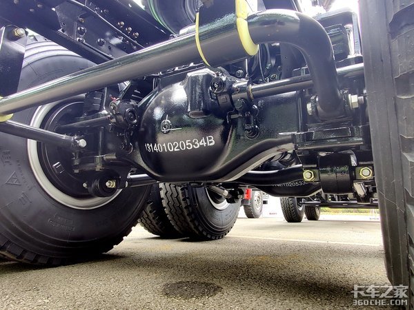 以及标配16T级的汉德铸钢车桥,速比为5.262,该车桥具有防水性能好,保养周期长的特点。它们共同组成了这款重载自卸黄金动力链,根据使用工况校核参数,爬坡性能提升5%,同时油耗还降低了3%,在提升性能的时候还达到了一定的经济性。