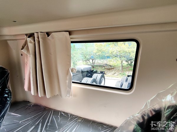 后面设置了一个加长加宽卧铺,能够满足一个成年人的正常休息,即便是需要长时间的等待装卸作业,也能给驾驶员提供一个良好的休息场所。