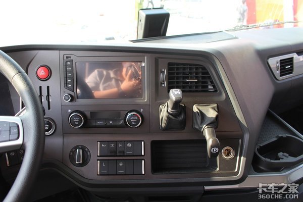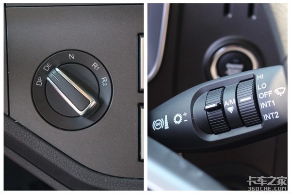 因为该车是采用AMT手自一体变速箱,所以和之前J7 AMT版本在变速箱操作机构的设计上保持一致,为旋钮式设计,布置在中控台上。在方向盘下面的操作杆上,还布置有挡位及液力缓速器的操作开关,操作起来十分的方便。