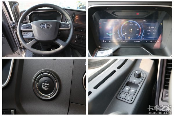 后视镜采用一体式设计,虽然保养维修时还要整体拆卸,但不得不说,一体式的设计在美观和降低风阻上有着很大的优势。另外,作为解放旗下的旗舰产品,后视镜电动调节及电加热都是标配。