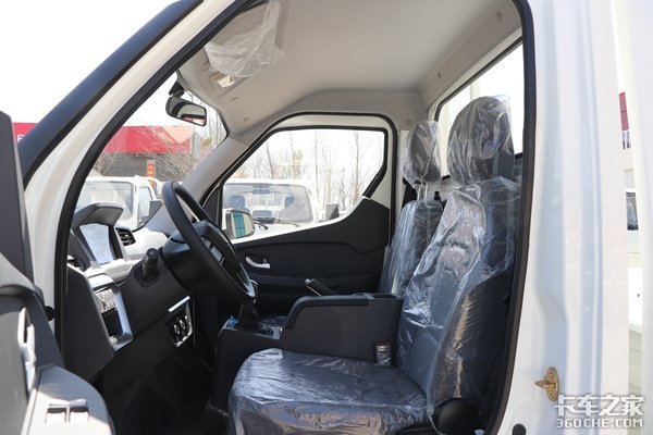 虽然说这款车是微卡,但是其驾驶室的空间还是非常宽敞的,小编作为一名身高175cm,体重160斤的壮汉,坐在主驾位置丝毫没有感觉到拥挤。驾驶室整体采用黑灰色系的内饰配色,抗污性非常不错,采用人体工学的设计的座椅还可进行四向调节,人体坐姿靠背角度调节可达20度,再搭配上独有的皮革软触扶手(两侧都安置有扶手),高强度运输是可有效降低疲累感。