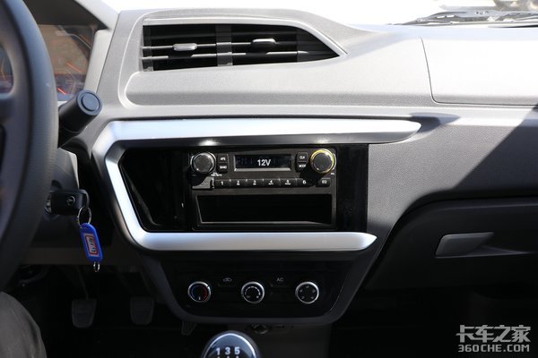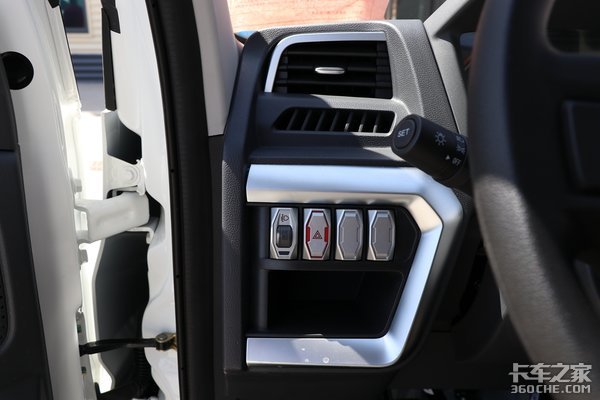 考虑到商用车的定位,车辆的内饰还是以塑料材质为主,塑料材质的耐用度较强,并且后期更换成本上更低。仪表盘的左下方安置有四个棱角分明的多功能按键,分别是大灯高度调节以及危险报警闪光灯的控制按键。
