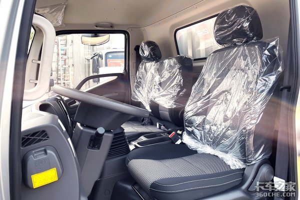座椅也是经过升级的,采用双色拼接设计,并有缝线处理提高档次感。实际乘坐可以感觉到支撑性更足,加上安全带高度可调,舒适性确实不错。另外,手刹通过后移设计,让驾驶员在装卸货的空闲期有了相对舒适的休息空间。