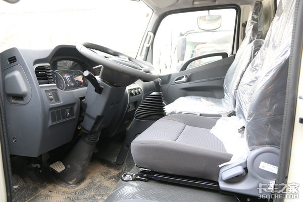 这款帅铃E轻卡因为采用了中体驾驶室,车内空间整体来看非常宽敞。主驾驶座椅的支撑性和包裹性都比较不错,行车过程中可以有效减轻驾驶疲劳。
