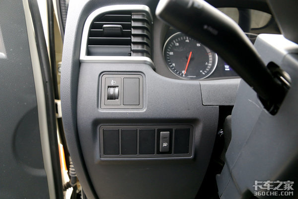 后视镜电加热按键和大灯高度调节旋钮布置在转向柱左侧,其中大灯高度调节按键方便卡友调节大灯照射角度,比如在车辆满载时车尾下压,车头上翘,灯光角度就会变高可能照不到路面,这时就需要调整旋钮,将灯光照射角度调整到合适的位置。