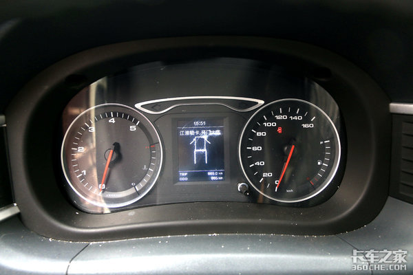仪表盘采用常见的机械指针+液晶仪表的组合,左侧是发动机转速表和水温表,右侧是车辆时速表和油量表,中间的行车电脑可实时显示油耗、里程等关键信息。