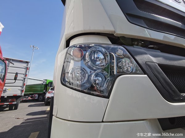 大灯部分依旧是重汽经典的五眼大灯,18年小换代的LED日行灯已经搭配在这辆车上。其他配置依旧是当前的主流搭配。独立的远近光灯碗工作时互不干涉,不像一些远近光一体的H4大灯,开了远光没近光。额外的远光增强灯也能进一步提升照明距离。