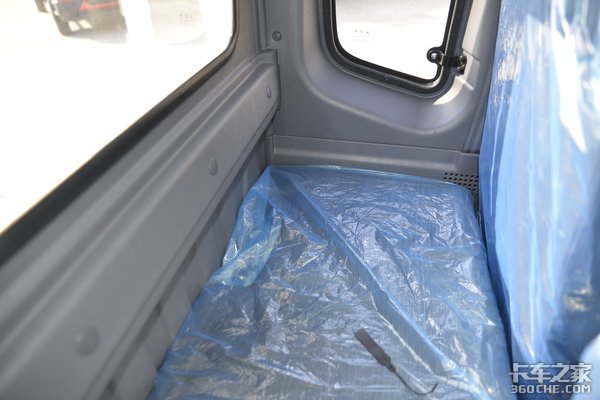 考虑到整车尺寸,这款车的卧铺休息区域确实有限。很多卡友其实将卧铺这一块变成了储物区域,可以放置一些随车的工具、电子秤等等。另外,卧铺两侧还设计有一个可以小角度开启的窗户,可以帮助车辆内通风换气。