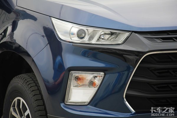 大灯组分体设计。上半部分是远近光灯,支持高度调节功能,卤素光源,近光灯配备透镜。下半部分集成了转向灯、雾灯和LED日间行车灯。