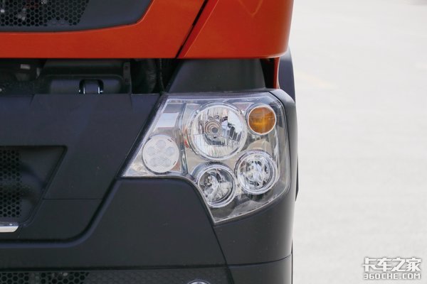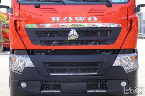 HOWO的LOGO位于中网镀铬亮条的上方,倒梯形的进气中网能满足车辆的散热需求,同时上方的黑色细网还能阻挡相当一部分杨絮飞虫进入到内部散热器上。