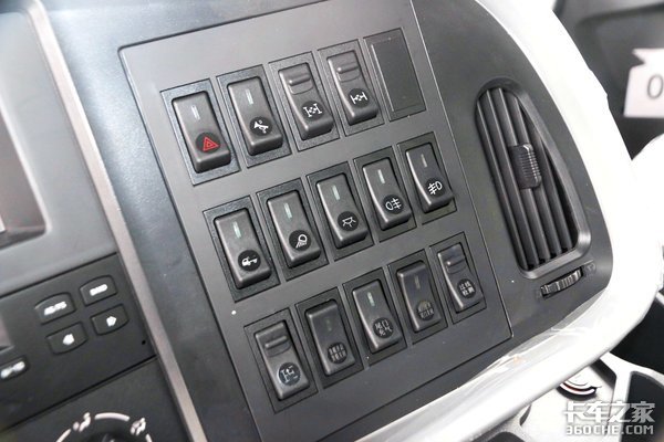 由于该车定位城建渣土用车,因此除了常规舒适性和差速器等功能以外,这台车还有货厢开启/关闭、尾门开启/关闭,以及尾门充气功能。尾门充气的目的是为了避免泥水流出,污染环境。