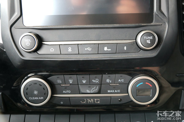 空调系统在中间位置,这辆江铃威龙HV5配备了自动空调系统,并带有MAX AC功能,能够一键最大功率制冷,降低车内温度。
