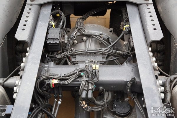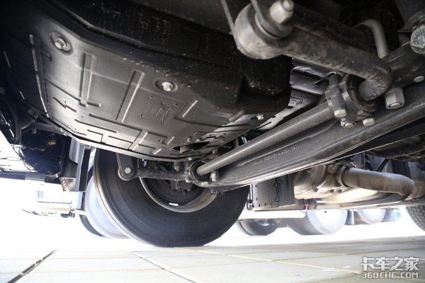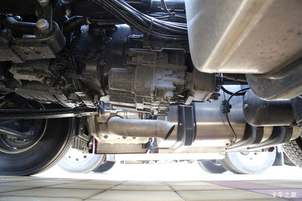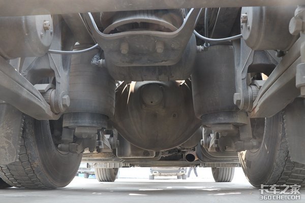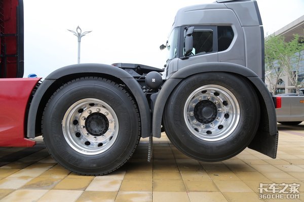 实拍车采用的是6×2R后提升的驱动形式,在重载状况下,可以放下后提升桥增加车辆的承载能力,轻载或空载时可升起后提升桥,这样就能减少轮胎磨损以及车辆的油耗,非常人性化。