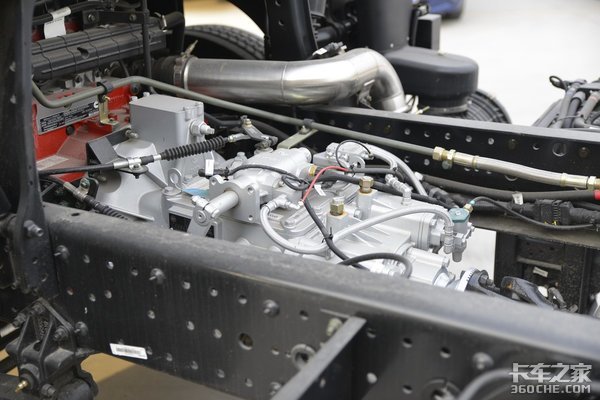 传动系统与之匹配的是法士特8JS86TE手动8挡变速箱,这款变速箱采用的是超速挡设计,最高挡速比为0.79。我们可以看到这款变速箱的壳体采用的是铝合金的材质,可以帮助整车更好的降重,并且这款变速箱在中卡市场的保有量也是非常的大,可靠性是经得起推敲的。