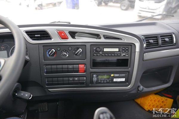 车辆的中控台采用半包围驾驶员的设计,镀铬材料的包边非常美观。在功能性方面,这款福田奥铃大黄蜂整体偏向于实用性,集成有空调控制区域、多功能按键区域以及多媒体区域。车辆的关闭DPF按键也被安置在了多功能按键这个区域,想要了解国六车辆操作注意事项的卡友可以观看这个视频(DPF装置这样操作 才是国六卡车的正确使用姿势),里面对DPF功能的介绍还是比较详尽的。