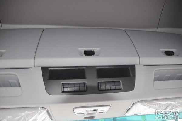 在驾驶员的头顶上方,安置有三个封闭式的储物空间,驾驶员和随车人员可将衣物、洗漱用品以及食物分门别类的放在不同的储物格,非常的干净卫生。