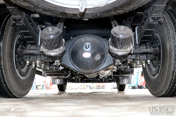 车辆采用汉德2吨级前桥、3.5吨级后桥,后桥速比为4.875,可选4.33速比。此外车辆采用鼓式制动系统,并且整车采用前少后多片簧悬架,能够给很好的做到提高舒适性、降重和承载性并重。
