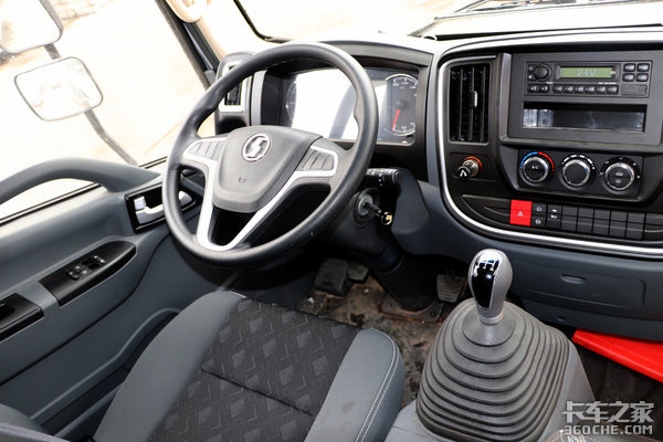 陕汽轻卡K3000的内饰设计主要以简洁大方为主,四幅式带有亮银色饰条点缀的方向盘,看起来也有着不错的时尚感,但没有多功能方向盘是个遗憾,好在可以选装。