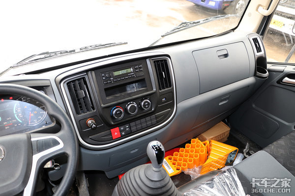 陕汽轻卡K3000车型的中控台设计布局错落有致,简约而又不失功能性。在功能区边缘还采用了亮银色饰条包裹,车辆内部配置功能满足日常行车使用需要,最右侧匹配有储物格。