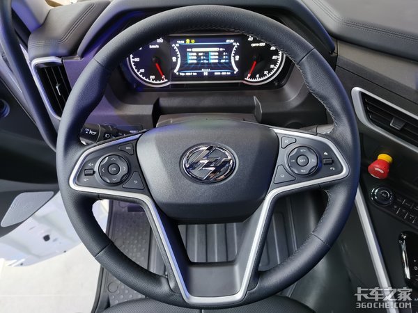 进入到这辆杰狮H6的车内,一切设计照旧,和传统的卡车并没有太大的区别。皮革缝线的方向盘握感上佳。整车的内饰很有乘用车的感觉,这也是目前卡车厂家提升车辆竞争力的主要方向。